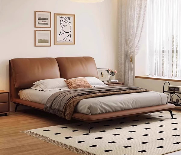 Double bed retro high-end wear-resistant and scratch-resistant microfiber leather Italian style