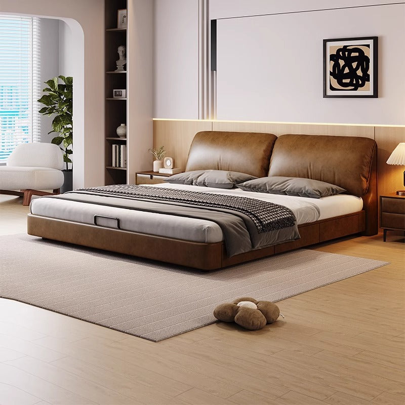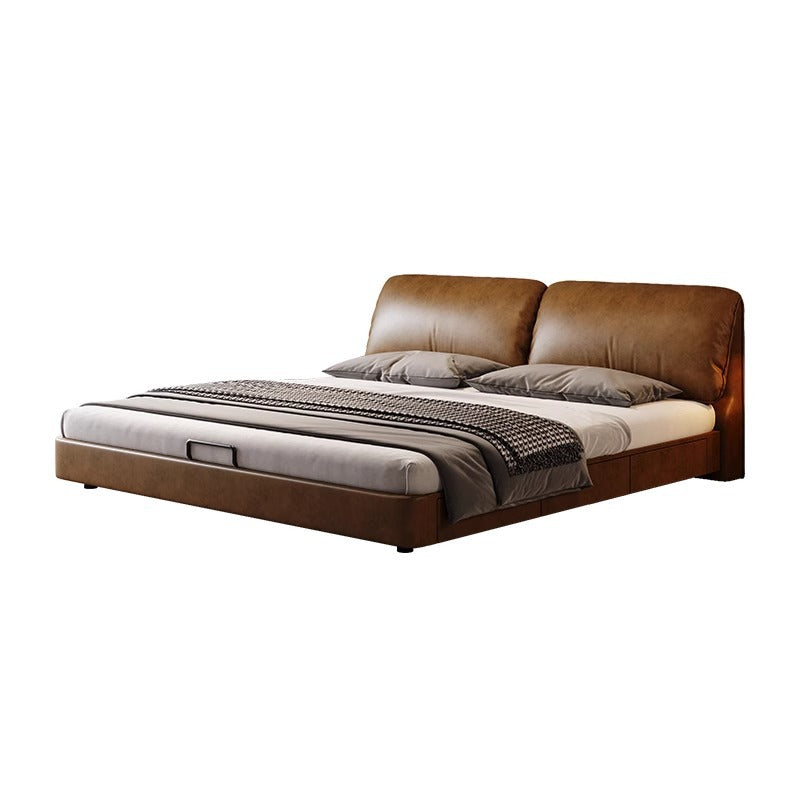 Double bed solid wood bed cow leather soft bag wedding bed Italian minimalist style