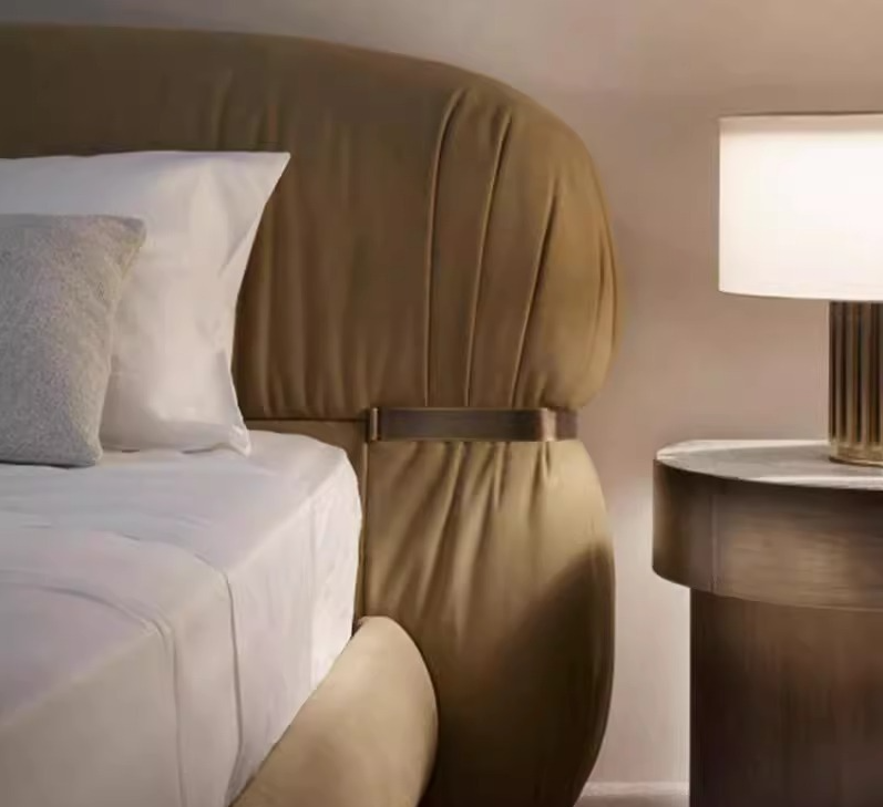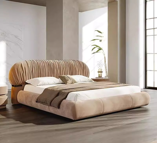 Double bed solid wood bed modern simple high-end design frosted cloth soft bed